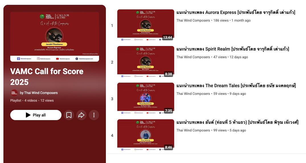 ทางทีมงานได้ย่อให้กระชับ เข้าใจง่าย มีหลากหลายของประเด็นให้ลองเข้ามาดู สามารถรับชมได้บน Youtube ของทาง Thai Wind Composers